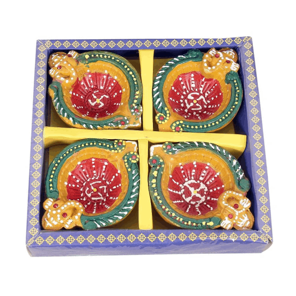 They are the perfect decor items and ideal gifts for Diwali. Let your world be illuminated by our vivacious collection of diyas decorated with beautiful colours and glitters.
