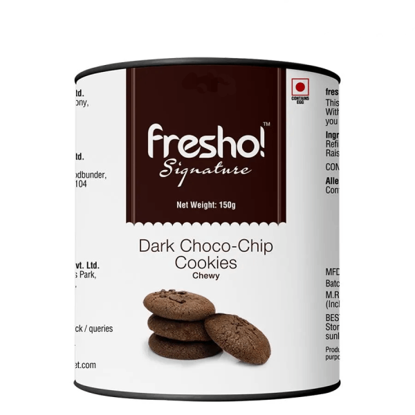 Fresho Signature presents brown coloured cookies that are made to satisfy your chocolate cravings. They are filled with Dark Choco chips so that you can’t miss the bite! These cookies are crunchy and deep in texture and taste. Its dense feel in the mouth will surely want to have more than one at a time. They are best with the evening snacks and tea/coffee or milk.