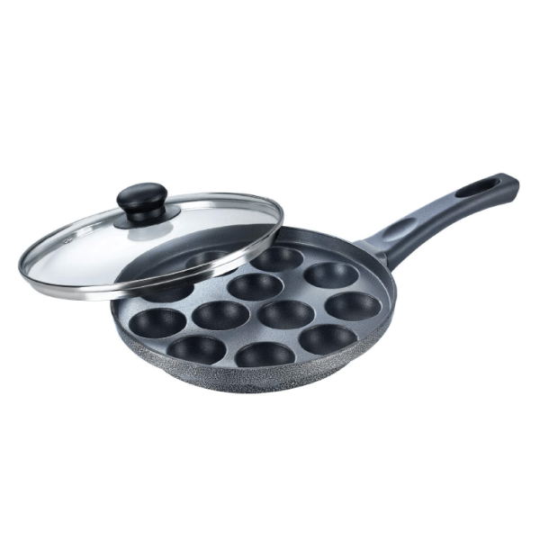 • Material: Alumunium; Size: Paniyarakkal 240 mm; Base type: Gas Stove Compatible; Base thickness: 3; Included components: Paniyarakkal (1U); Colour: Black. Lid Included : Yes